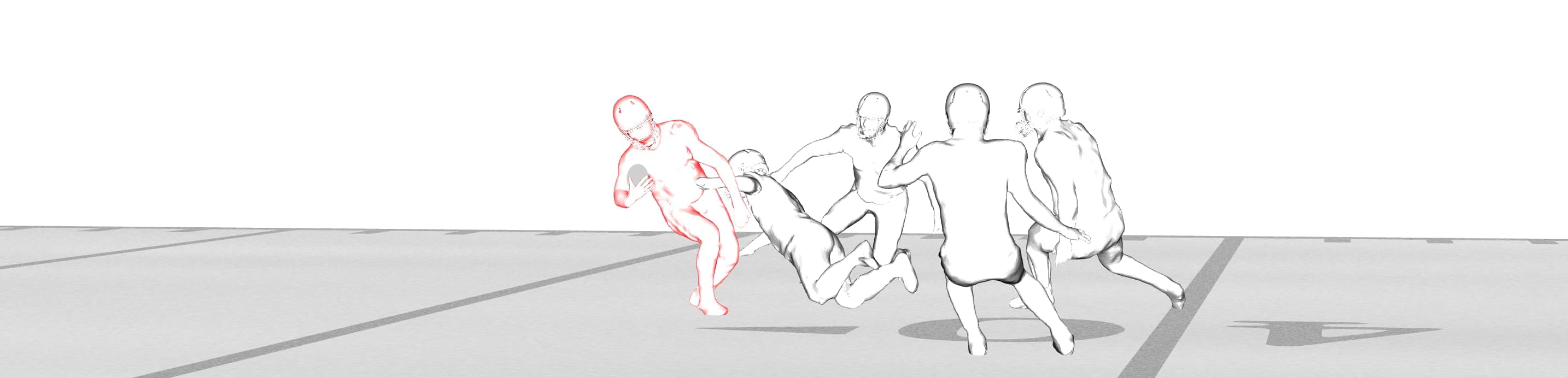 Machine Learning 3D Reconstruction: We used the ICON machine learning model (developed by Yuliang Xiu, Jinlong Yang, Dimitrios Tzionas, Michael J. Black and the Max Planck Institute) to generate accurate 3D player models from single photographs. The model worked remarkably well even with football helmets and padding, though required manual refinement in post-production to ensure anatomical accuracy.